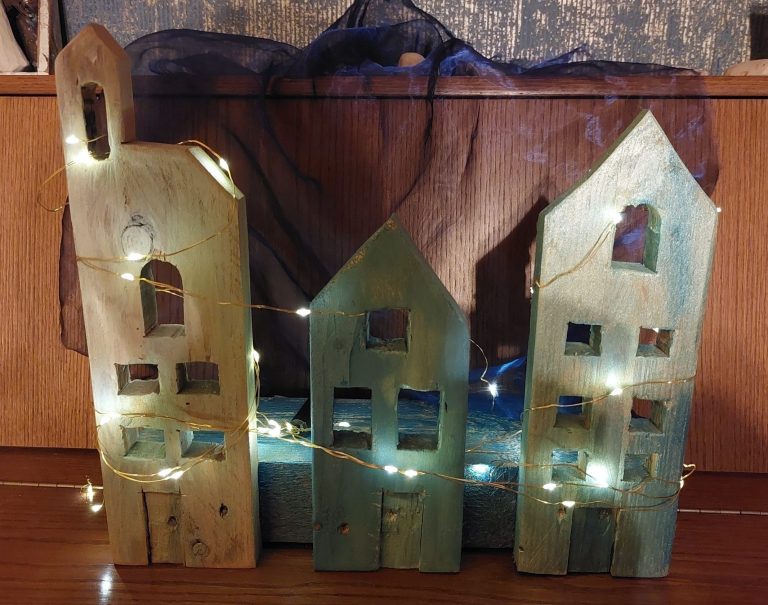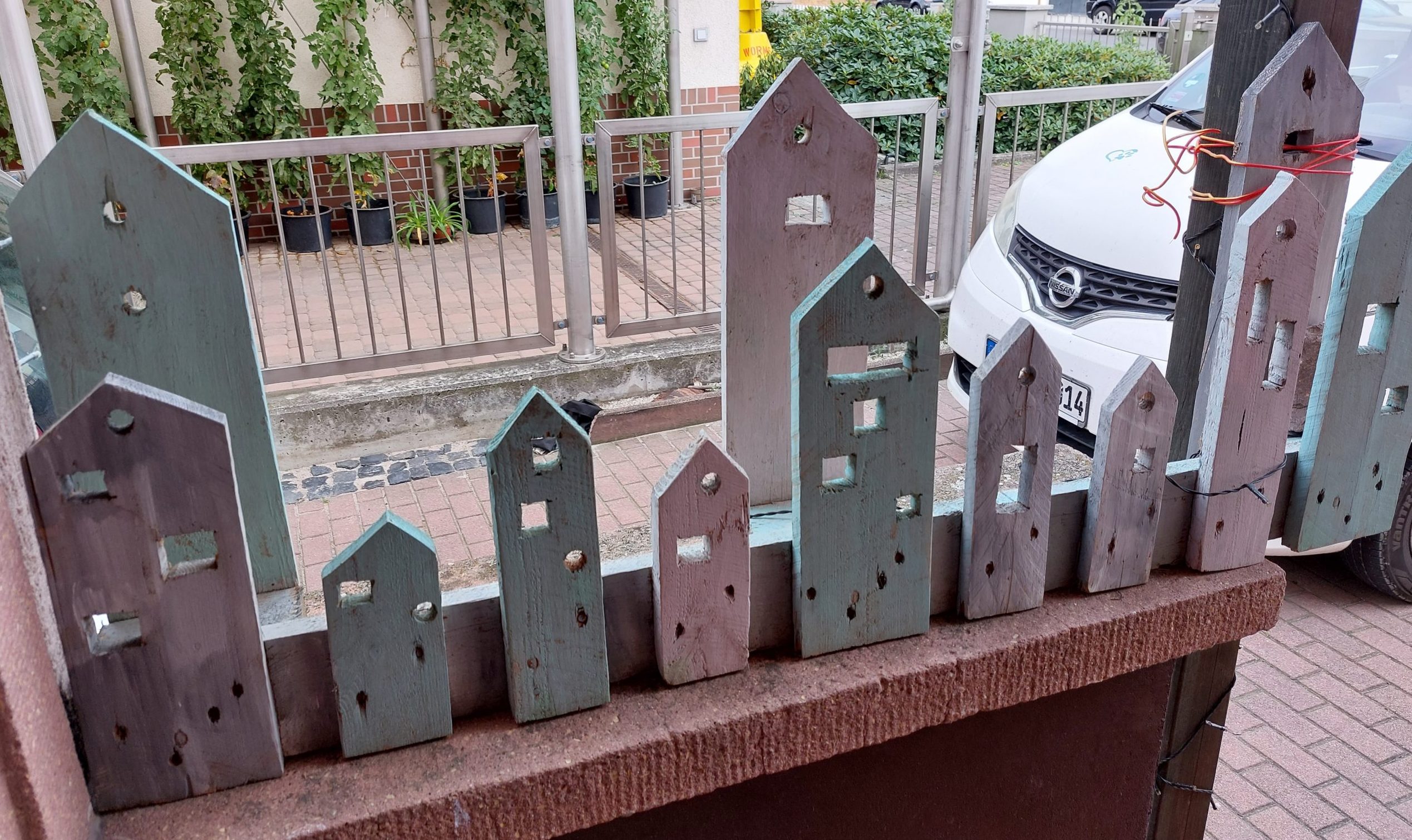Es wird die Silhouette einer Phantasie-Stadt aufgezeichnet und ausgesägt. Es besteht auch die Möglichkeit selbst eine Silhouette aus der eigenen Phantasie aufzuzeichnen.