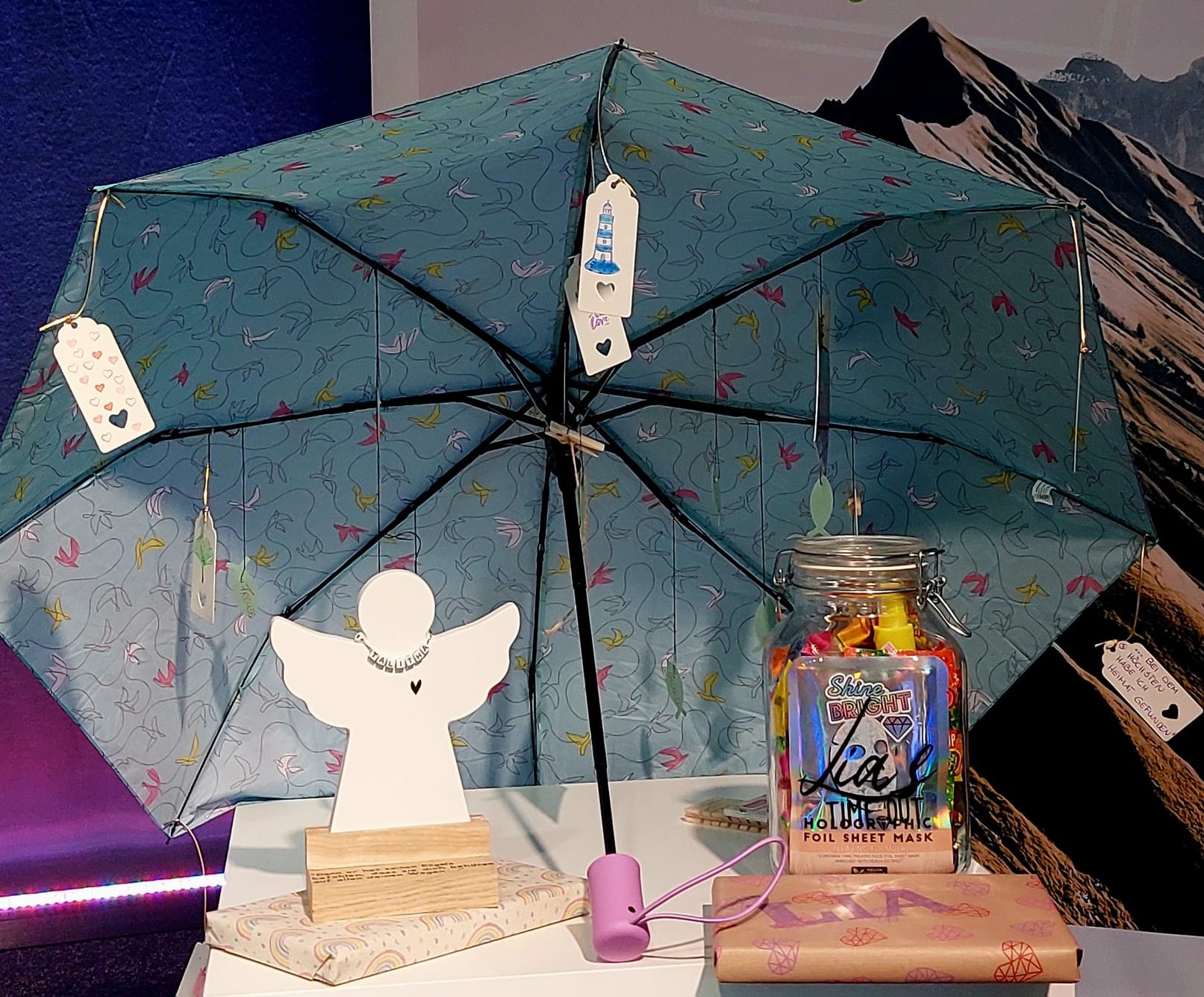 Ein Regenschirm mit Wunschkarten
